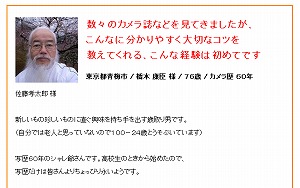 カメラ開発者の視点から、良いカメラ・レンズ選びを指導してくれるだけではなく、